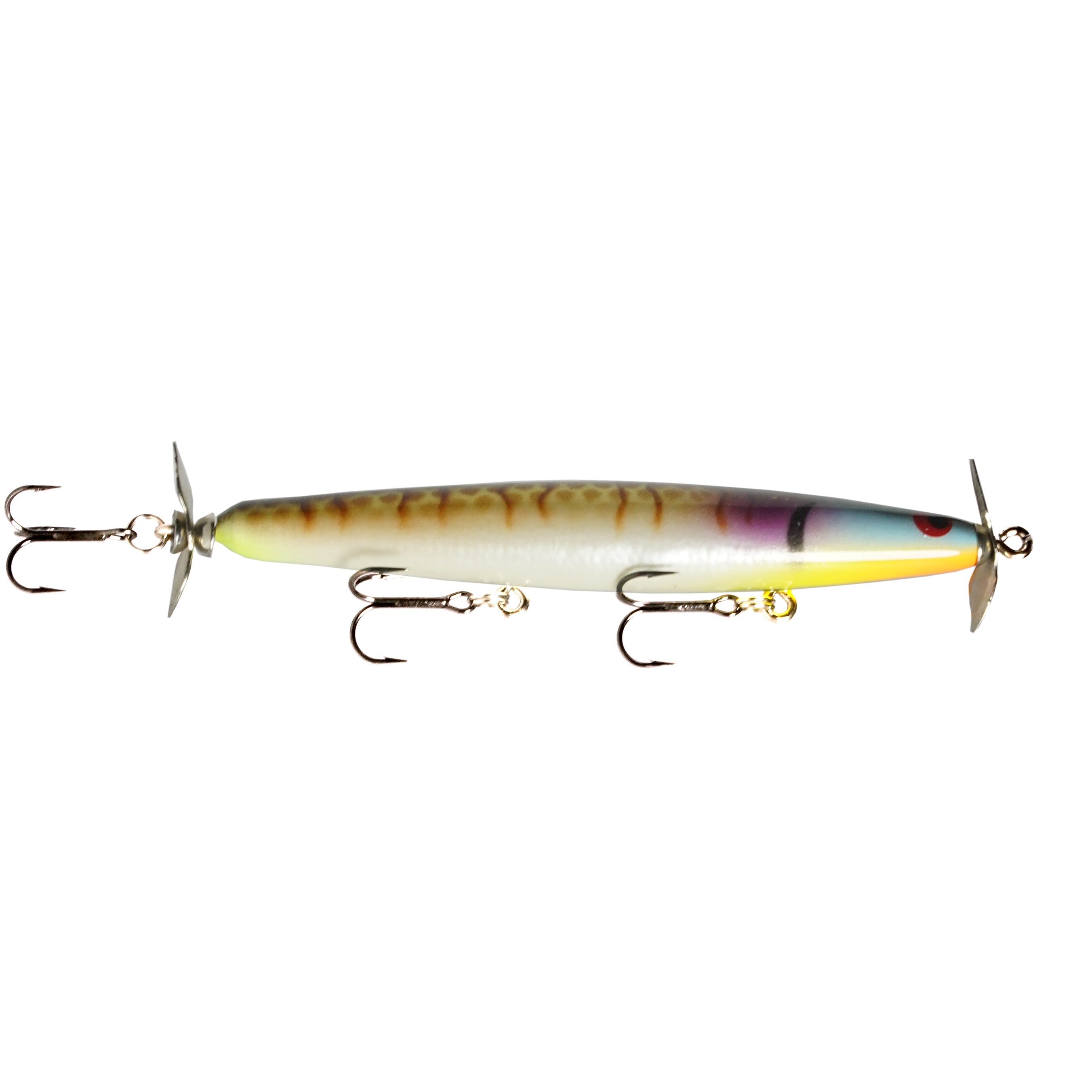 Combining proven fish catching action with quality craftsmanship, the Old School Balsa Baits Thin Spin Propbait delivers topwater performance that is second-to-none. Fitted with two stainless steel props, the Old School Balsa Baits Thin Spin Propbait churns the water’s surface and produces an irresistible sputtering action that triggers explosive topwater strikes.