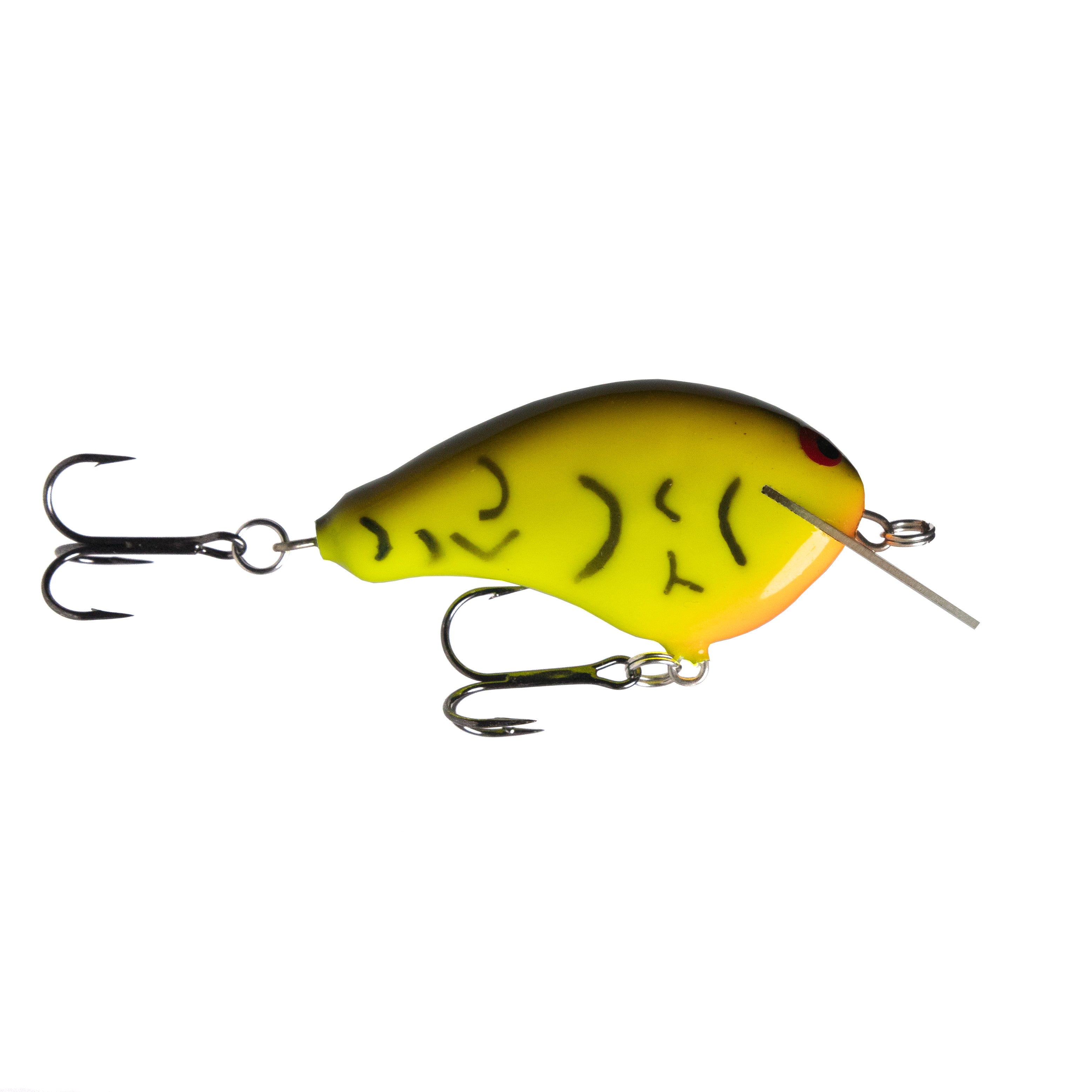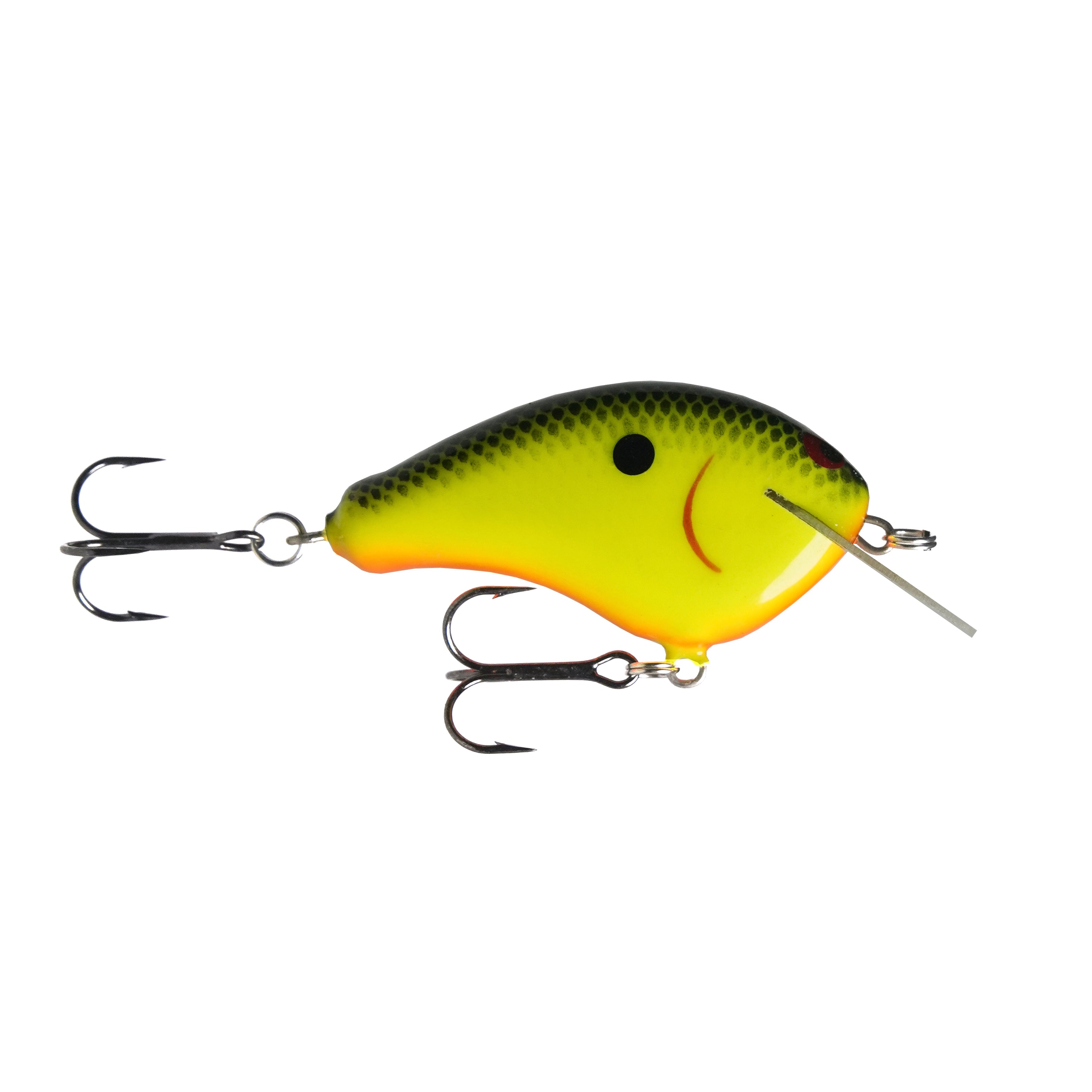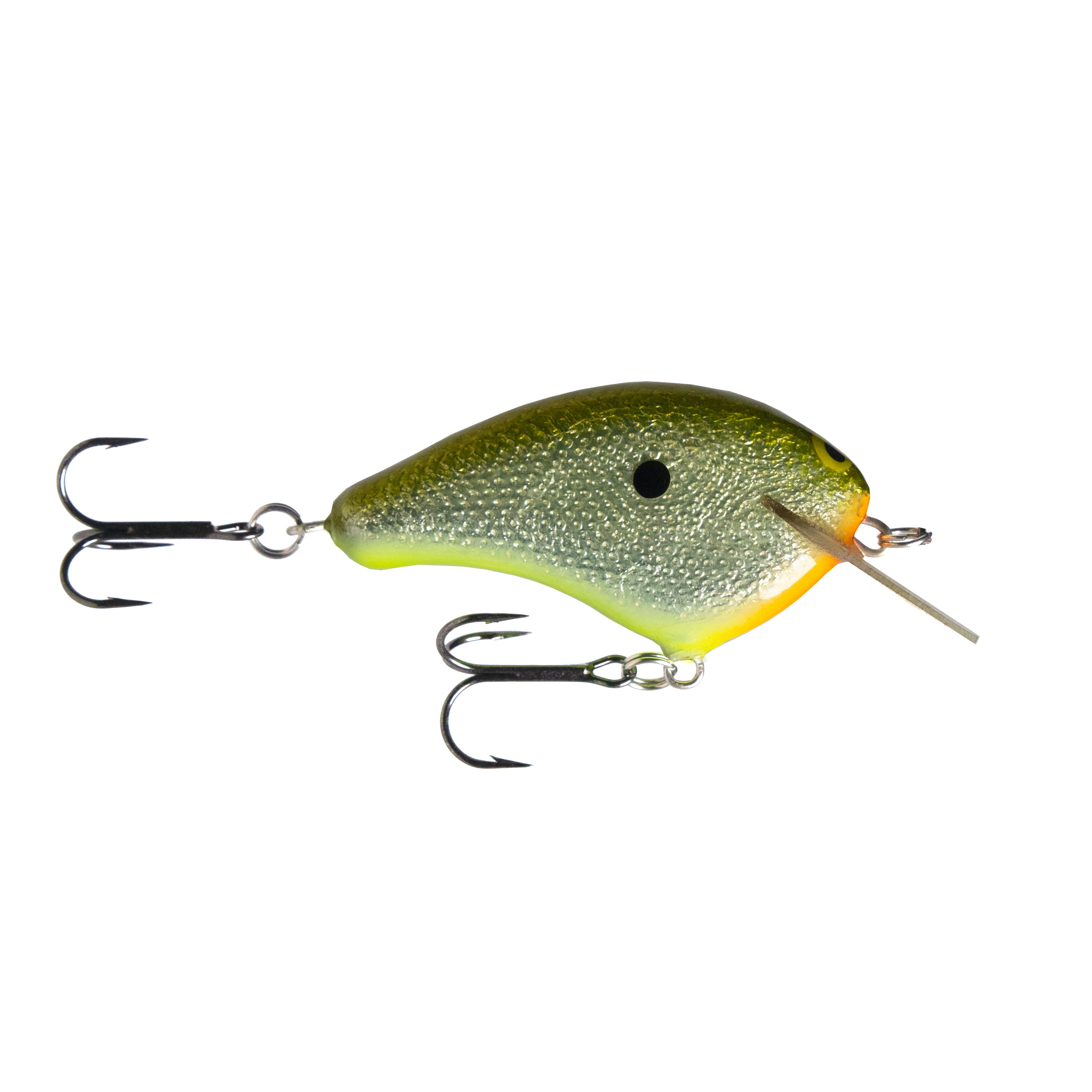 This must have round bill, flat bait wobbles like a square bill. This bait throws well, has a hard wobble, and tracks straight when retrieved quickly.